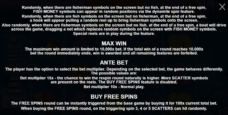 อัพเดทสูตรเกมสุดปังประจำวันให้แล้ว กับผลงานที่จะมาส่งต่อความรวยความปังให้กับผู้เล่นทุกท่านในวันนี้ มาในกราฟฟิดเกมเกี่ยวกับการตกปลา ซึ่งมีภาพในเกมสวยงามสะดุดตาน่าเล่นมาก เกมนี้เป็นอีกเกมที่คนชอเกมสล็อตไม่ควรพลาด UFABET เข้าสู่ระบบ สำหรับเกมนี้ก็มี่ค่าความผันผวนในเกมอยู่ 96.07% ถือว่าเป็นตัวเลขที่สูงมากๆ จึงทำให้ภายในเกมมีการแจกเงินรางวัลให้กับผู้เล่นอย่างต่อเนื่อง สล็อต เว็บตรง ใครเล่นแล้วไม่เคยแตกไม่เคยได้รับเงินรางวัลก้อนโตต้องเกมนี้เลย รับรองว่าไม่ทำให้ผู้เล่นผิดหวังอย่างแน่นอน UFA365 ส่องอัตราการจ่ายเงินรางวัลของเกมนี้และสัญลักษณ์ภายในเกม สัญลักษณ์ Wild มาในรูป ชาวประมงกับปลาสามารถใช้แทนสัญลักษณ์ในเกมได้ทุกสัญลักษณ์ (ยกเว้นสัญลักษณ์ scatter ) ซึ่งจะทำให้ท่านมีโอกาสรับเงินรางวัลในเกมง่ายขึ้น , สัญลักษณ์ scatter รูปปลากับตะขอ หากแสดงสัญลักษณ์สัญลักษณ์ตามที่กำหนด ท่านจะได้รับฟรีสปินหมุนฟรี , สัญลักษณ์ เหยื่อปลา หากปรากฎในวงล้อตามที่กำหนด จะมีอัตราการจ่ายเงินรางวัลสูงสุด 400 เท่า , สัญลักษณ์ เบ็ดตกปลา หากปรากฎในวงล้อตามที่กำหนด จะมีอัตราการจ่ายเงินรางวัลสูงสุด 200 เท่า , สัญลักษณ์  แมลงปอ หากปรากฎในวงล้อตามที่กำหนด จะมีอัตราการจ่ายเงินรางวัลสูงสุด 100 เท่า , สัญลักษณ์ อุปกรณ์ตกปลา หากปรากฎในวงล้อตามที่กำหนด จะมีอัตราการจ่ายเงินรางวัลสูงสุด 100 เท่า , สัญลักษณ์ ปลาต่างๆ หากปรากฎในวงล้อตามที่กำหนด จะมีอัตราการจ่ายเงินรางวัลสูงสุด 40 เท่า , สัญลักษณ์ A หากปรากฎในวงล้อตามที่กำหนด จะมีอัตราการจ่ายเงินรางวัลสูงสุด 20 เท่า , สัญลักษณ์ K หากปรากฎในวงล้อตามที่กำหนด จะมีอัตราการจ่ายเงินรางวัลสูงสุด 20 เท่า , สัญลักษณ์ Q หากปรากฎในวงล้อตามที่กำหนด จะมีอัตราการจ่ายเงินรางวัลสูงสุด 10 เท่า , สัญลักษณ์ J หากปรากฎในวงล้อตามที่กำหนด จะมีอัตราการจ่ายเงินรางวัลสูงสุด 10 เท่า , สัญลักษณ์ 10 หากปรากฎในวงล้อตามที่กำหนด จะมีอัตราการจ่ายเงินรางวัลสูงสุด 10 เท่า ,